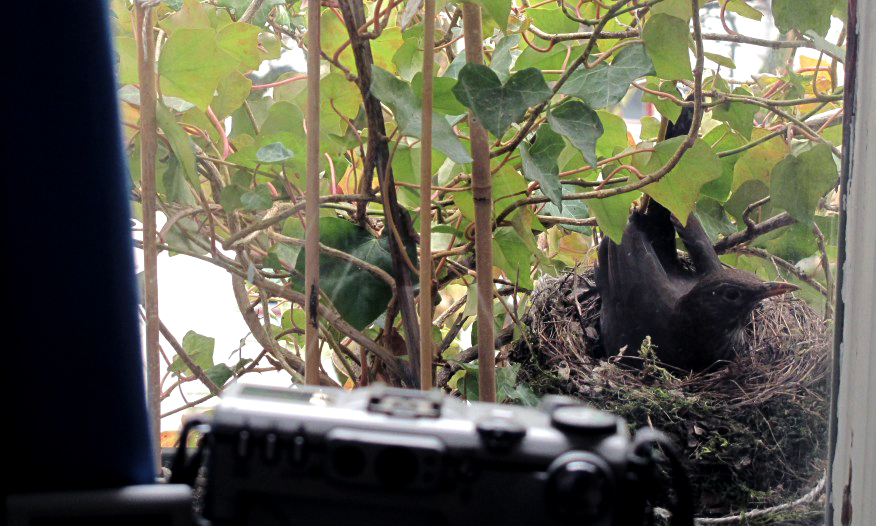 Ich begleite fotodokumentarisch das Geschehen vom Nestbau der Amselmutter über
